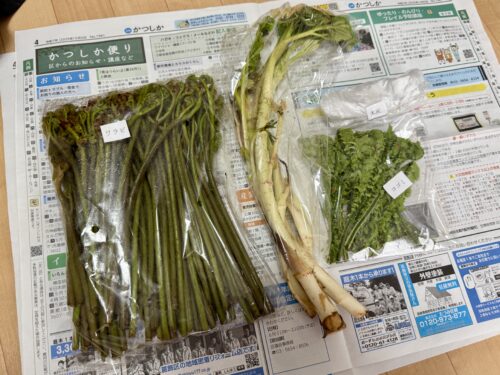 左からワラビ、ウド、コゴミ